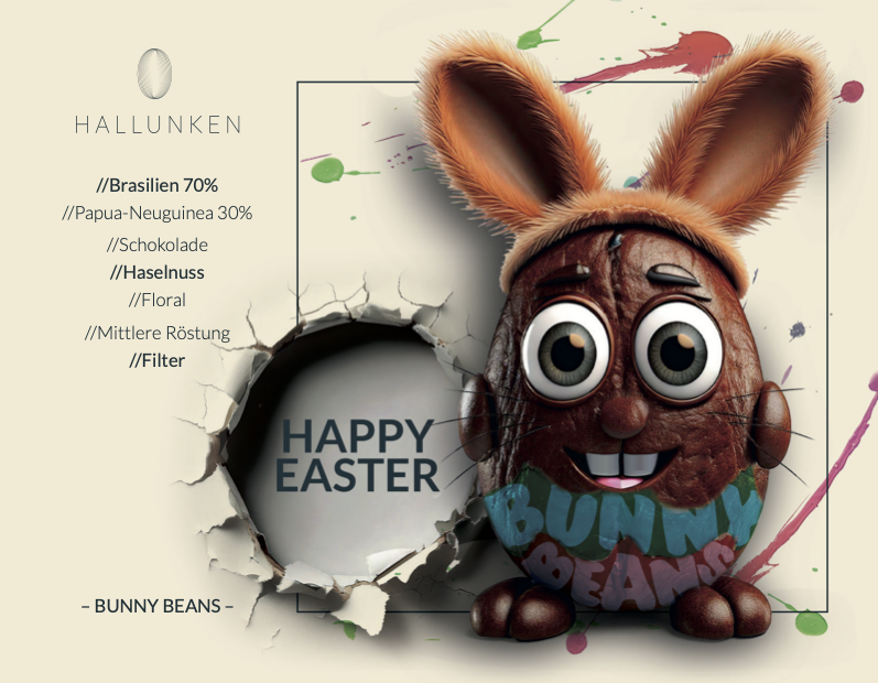 Auf der Suche nach dem perfekten Kaffee für den Frühling? Good News – du hast ihn gefunden! Mit Bunny Beans hast du alles im Osterkörbchen, was ein guter Arabica-Blend braucht: Aromen von Schokolade und Haselnuss, ergänzt um frische, florale Noten als Vorboten der warmen Jahreszeit. Happy Easter!